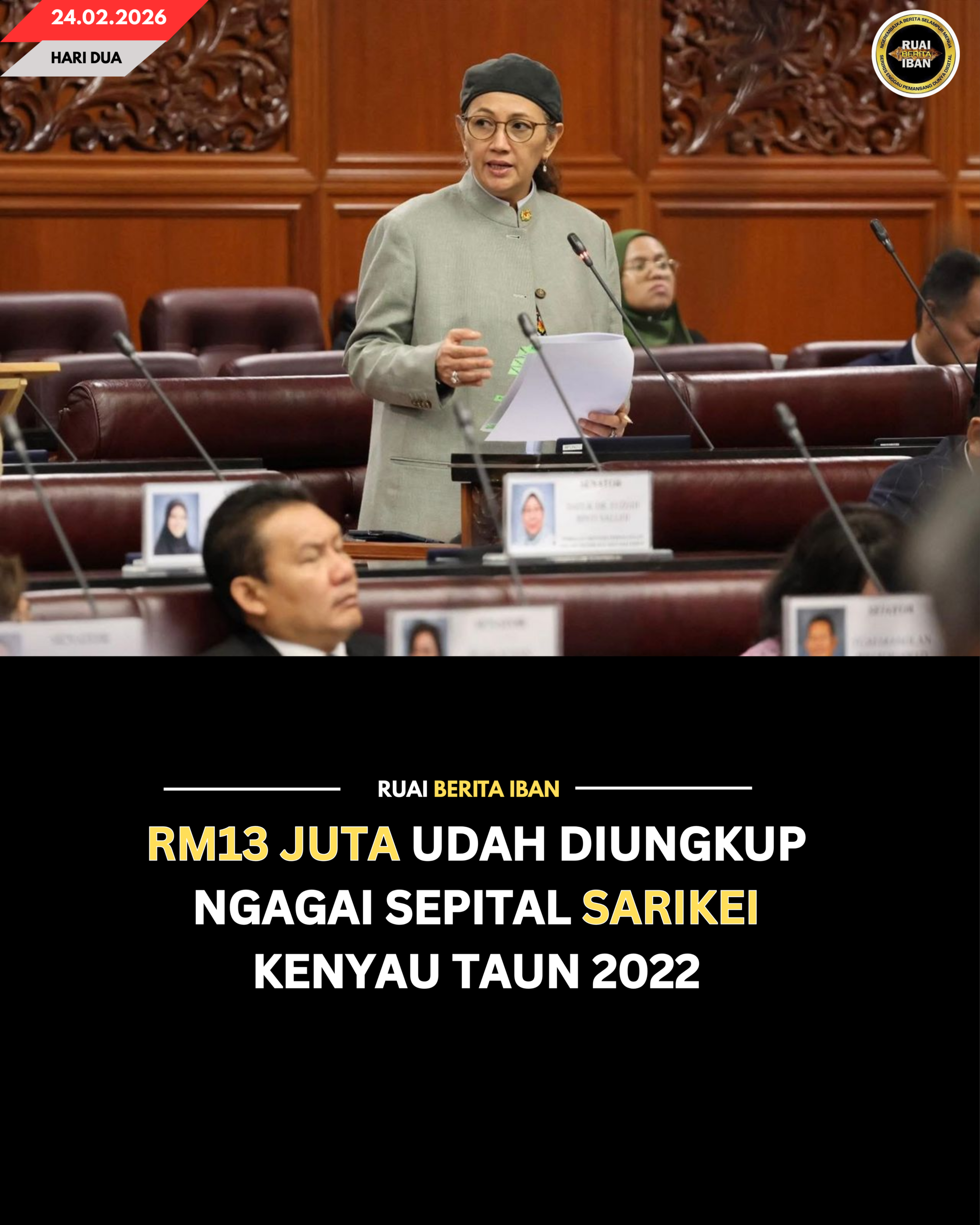 KUALA LUMPUR, 24 Feb – Sepital Sarikei nerima agih belanja sepenyampau RM13 juta kenyau ari taun 2022 ungkup pengawa nukar enggau ngangkatmanah perengka perubat besai ba sepital nya.