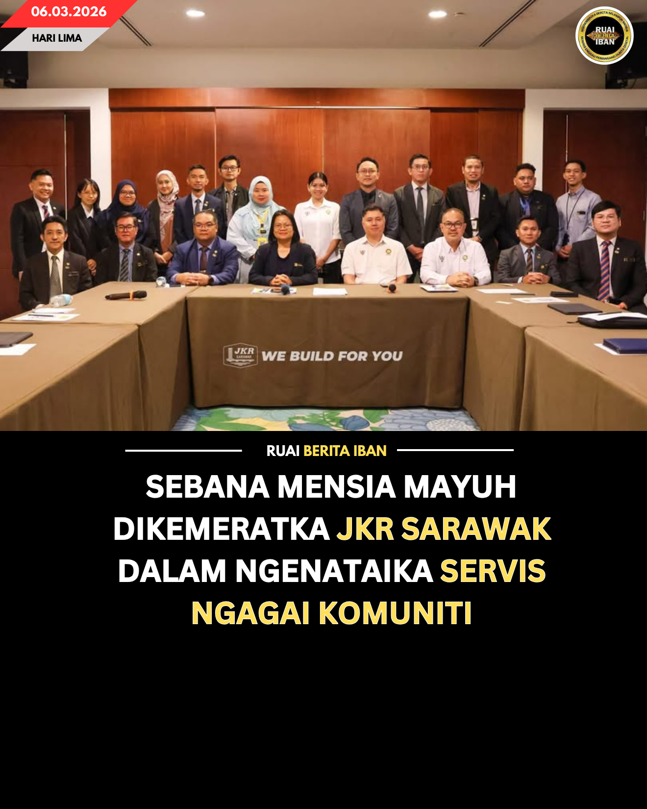 JKR Sarawak komited deka terus ngangkatka pemanah kualiti meri servis ngagai rayat nengah chara nentuka tetiap sebana ke diterima diberi perati ke berat, lalu atur ke patut diambi ungkup pengelantang enggau pengelikun penguna perengka guna mensia mayuh. -RBI