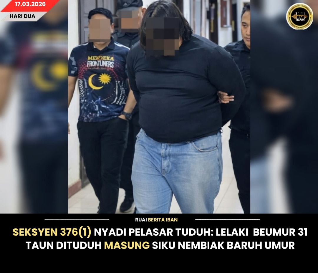 KUCHING, 17 Mac – Tuduh ari baruh Seksyen 376(1) Kanun Keseksaan ti nyendiaka ukum jil nyentuk 20 taun enggau sipat nyadika pelasar kes siku lelaki beumur 31 taun ke dituduh masung siku nembiak indu ke bedau chukup umur.