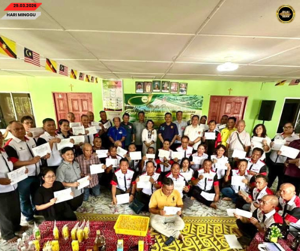 SEKUAU, 29 Mac — Penatai lebih 100 iku Tuai Rumah ari serata kandang menua DUN Tamin ba Pengerami Bejadika JKKK Tinting Pegari Sekuau mandangka pengandal ke tegap komuniti renggat baruh ngagai kuing pemansang ti dipejalaika ari baruh Kaban Kunsil Nengeri (ADUN) Tamin YB Ir. Christopher Gira Sambang.