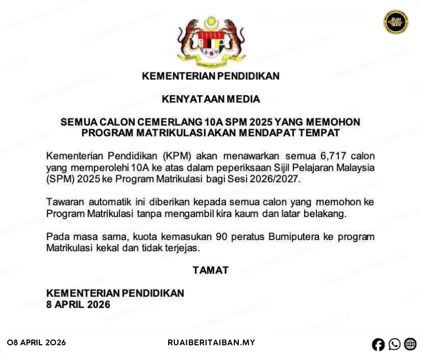 Home newsiban Semua chalun ke bulih 10A SPM 2025 diberi penuduk masuk matrikulasi