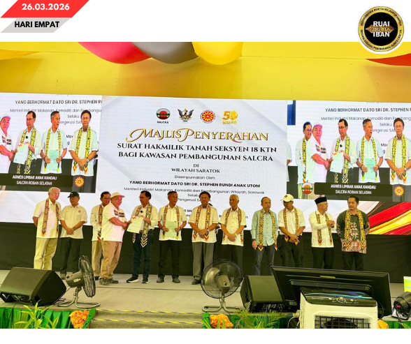 Menteri Industri Pemakai, Komoditi enggau Pemansang Kandang Menua Sarawak, Dato Sri Dr Stephen Rundi Utom madahka pengawa nyerahka pala tanah nyadi bukti komitmen perintah ti terus ngenegapka pengawa ngaku hak ngempu tanah, kelebih agi ngaul tanah Hak Adat Bansa Asal (NCR).