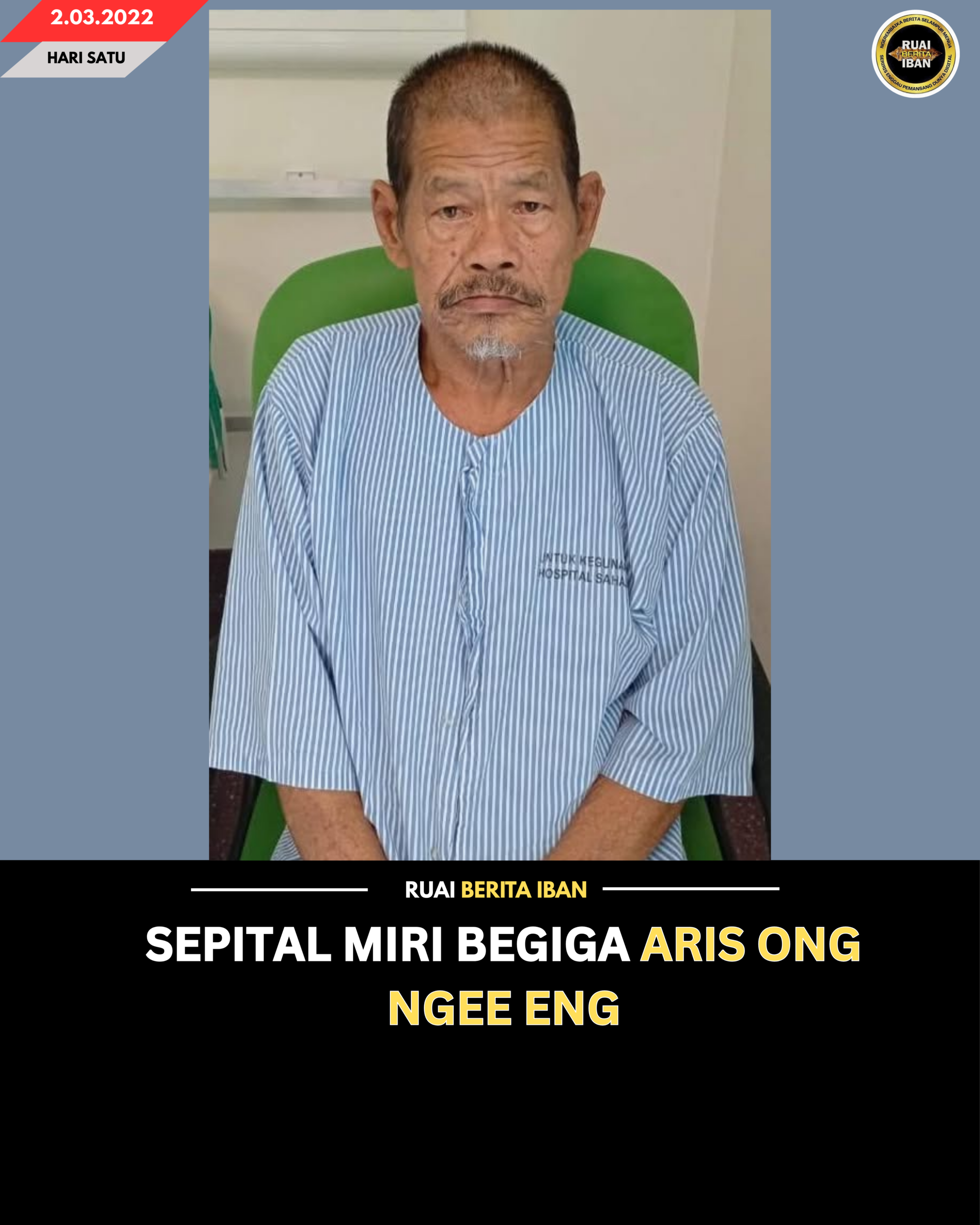 MIRI, 2 Mac – Sepital Miri diatu benung nyidi aris tauka diri sebilik siku pesakit lelaki beumur 73 taun, benama Ong Ngee Eng.