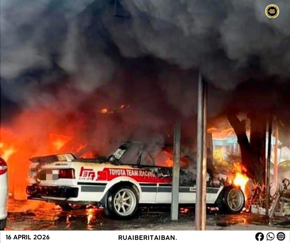 “Bela kena empas ari penusah tu iya nya dua buah kerita iya nya sebuah kerita Proton Persona enggau sebuah kerita Toyota Hardtop AE70 ke bela urung 90 peratus angus,” ku iya nengah siti penerang sehari tu.
