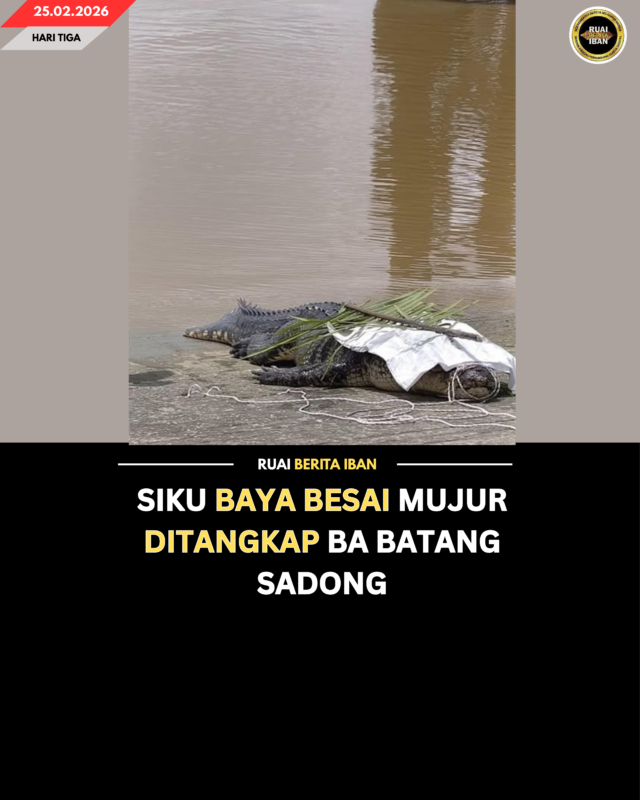 SADONG JAYA, 25 Feb — Siku baya besai diripotka mujur ditangkap ba kandang menua Batang Sadong semak Sungai Bulu sehari tu, nitihka posting ti diupload Wan Zai Nal ba platform Facebook.