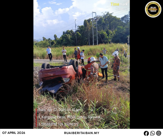 LUNDU, 7 April – Siku lelaki beumur 27 taun balat bakal pengudah kerita Proton Saga FLX ke dipasang iya ensayar lalu tepawah ke tisi jalai ba penusah ke nyadi ba Jalai Senibong, Jalai Besai Pan Borneo, tengahari tu tadi.