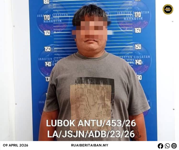 LUBOK ANTU, 9 April – Siku lelaki beumur urung 40 taun ditan polis ari Bagi Pansik Jenayah Narkotik IPD Lubok Antu di kandang menua Engkilili ketegal ngaul diri enggau aktiviti dadah tengahari tu tadi.