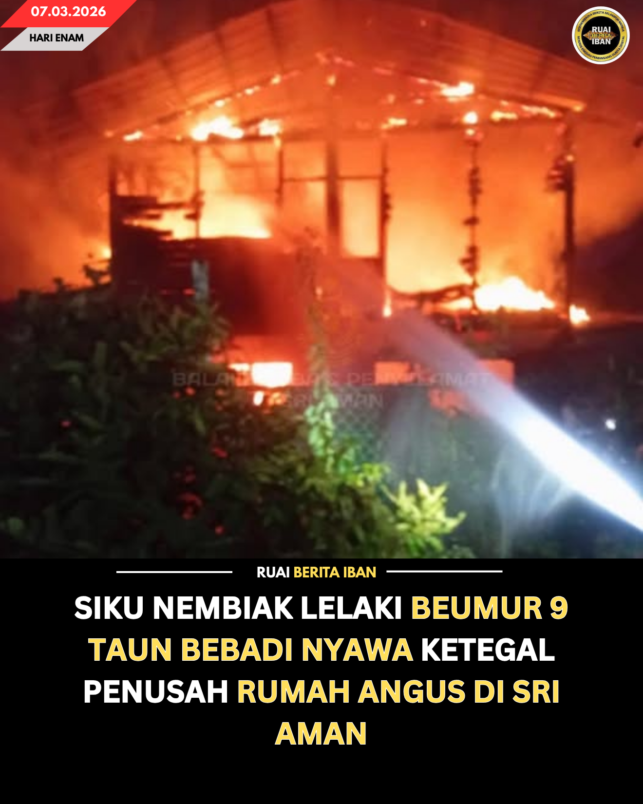 SRI AMAN, 7 Mac — Siku nembiak lelaki beumur 9 taun bebadi nyawa pengudah tepekul ba penusah angus ti nganguska sebuah rumah setengah tetap dua ringkat di Lorong 1, Taman Sentosa Indah, tumu pagi tadi.