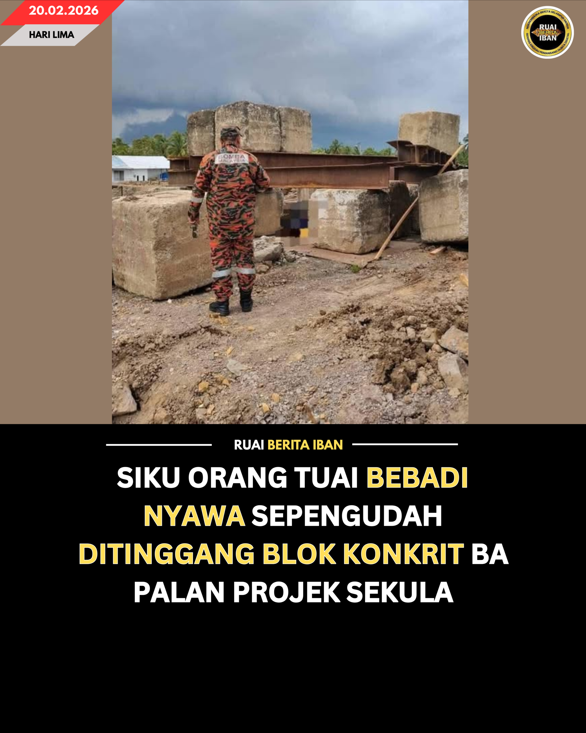 SIMUNJAN, 27 Feb — Siku orang tuai ke gawa ngaga rumah bebadi nyawa sepengudah ditinggang blok konkrit ba sebengkah penusah ke nyadi ba palan ngaga Sekolah Kebangsaan (SK) Sageng, ditu, tengahari tu tadi.