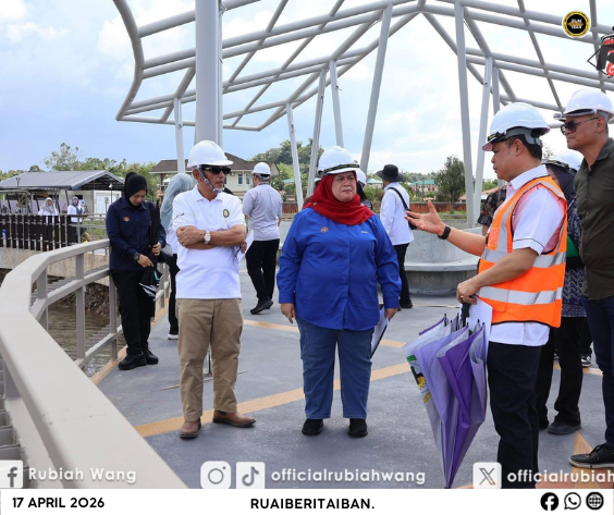 KOTA SAMARAHAN, 17 April – Sapit Menteri Pemansang Menua Pesisir enggau Kandang Menua, Datuk Hajah Rubiah binti Wang bepeluang beratika diri empu pejalai projek Tasik Taman Desa Ilmu ke diatu ti udah dipunka enggau rasmi dalam bulan November 2024.