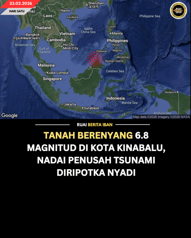 TANAH BERENYANG 6.8 MAGNITUD DI KOTA KINABALU, NADAI PENUSAH TSUNAMI DIRIPOTKA NYADI