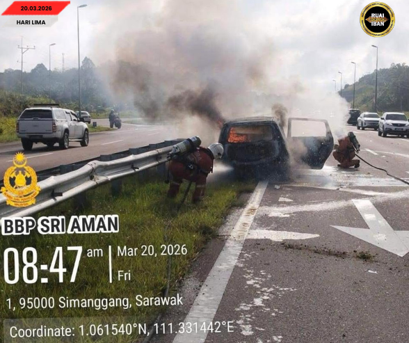 Nitihka ripot ari Opis Bomba enggau Penyah Penusah Malaysia (JBPM), kangau ngenyit diterima urung pukul 8.30 pagi sebedau seraban raban ari Balai Bomba enggau Penyah Penusah Sri Aman dianjung ngagai palan penusah nyadi.