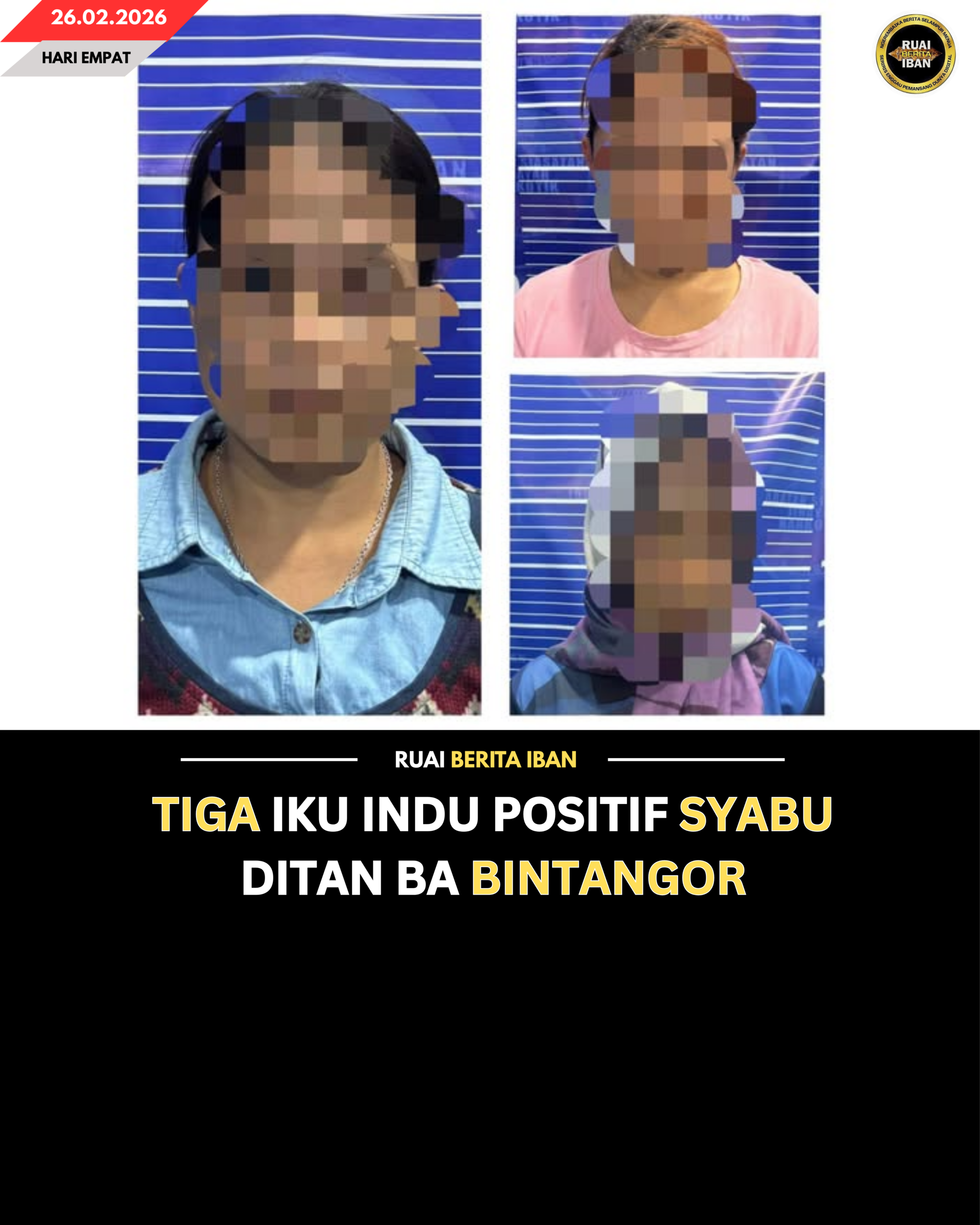 “Ketiga-tiga saspek indu beumur 42, 26 enggau 37 taun nya ditan ketegal dipelabaka salah guna dadah sebedau dibai ngagai IPD Meradong ngambika atur silik agi dipejalaika.