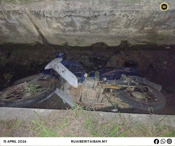 Ba penusah nya, mutosikal ke ditepan sida iya dipelabaka enda ensayar sebedau tepawah ngagai parit ba palan penusah nyadi.