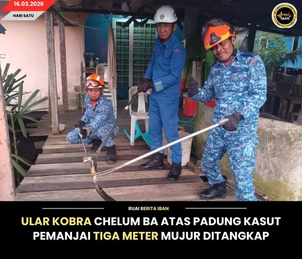 DARO, 16 Mac — Raban Penyaga Pengelikun Mensia Mayuh Malaysia (APM) di Pelilih Daro mujur nangkap siku ular kobra chelum urung tiga meter pemanjai ti ditemu ba atas padung kasut ba mua pintu sebuah rumah di Kampung Pangtray, ditu, sehari tu tadi.