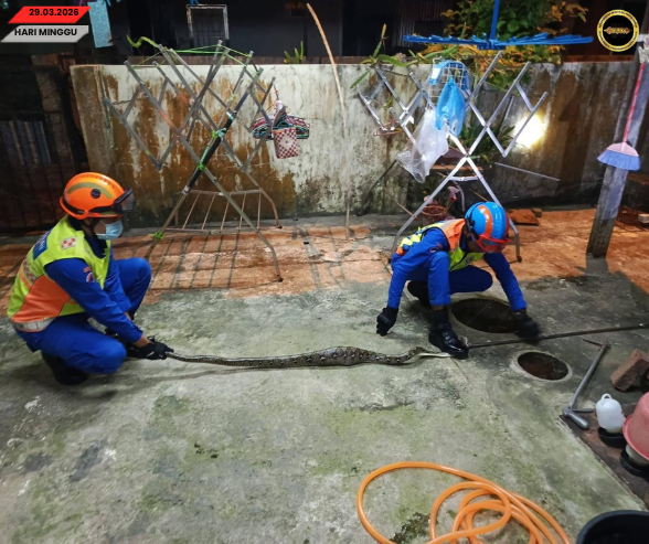 Tim APM ke datai ba palan nya terus bejalaika pengawa enggau jampat ngena teknik ‘sintak’ sebedau mujur nangkap ular nya.